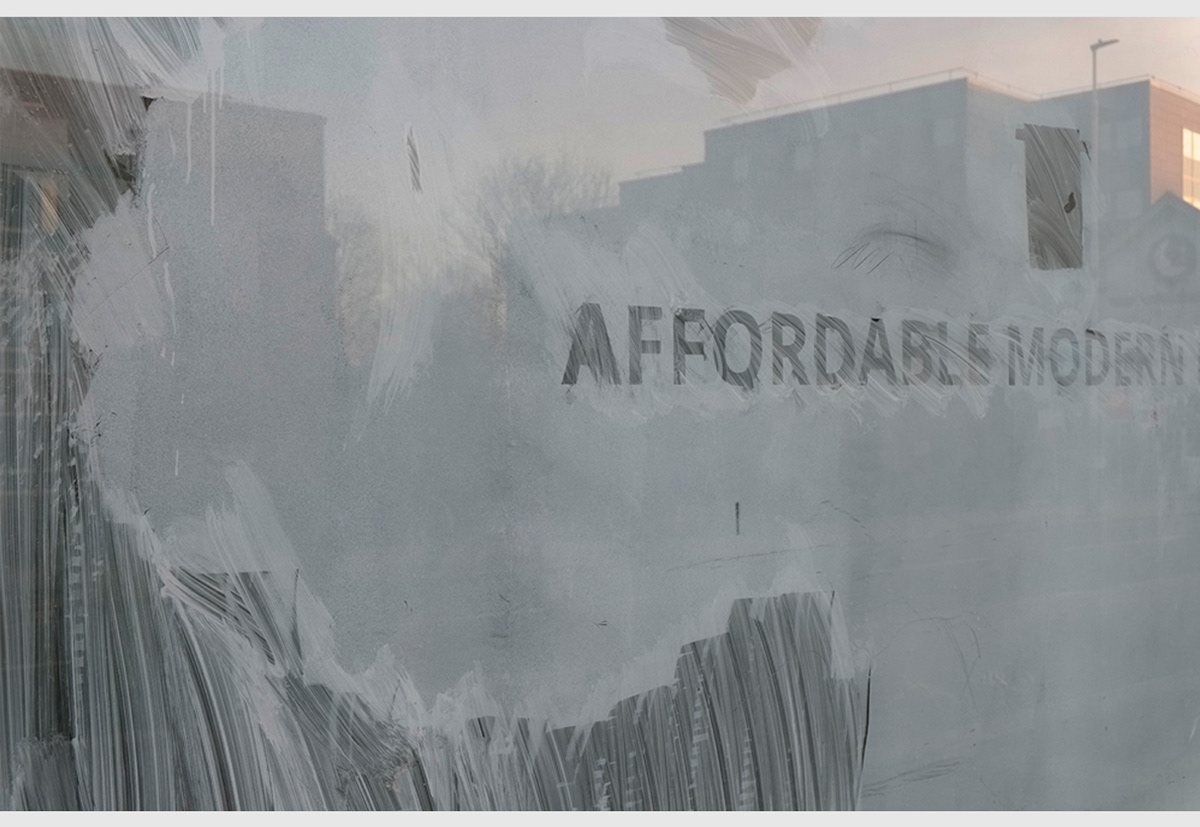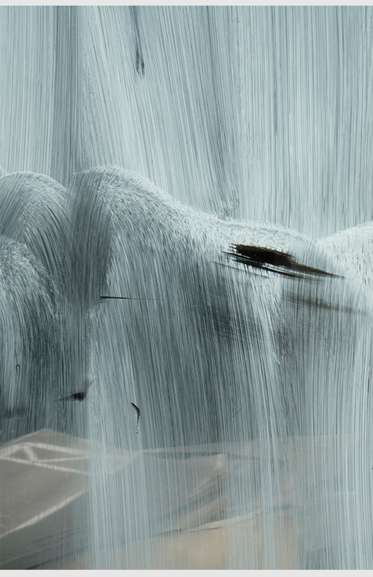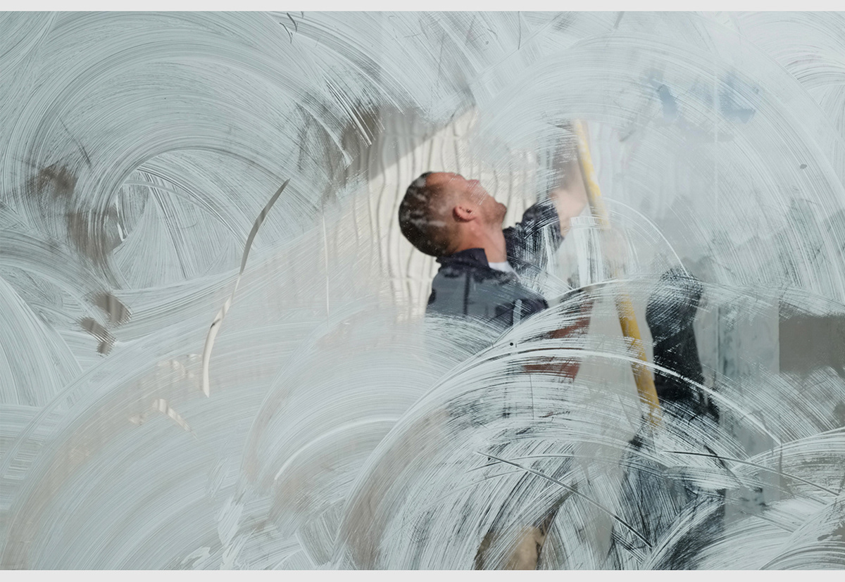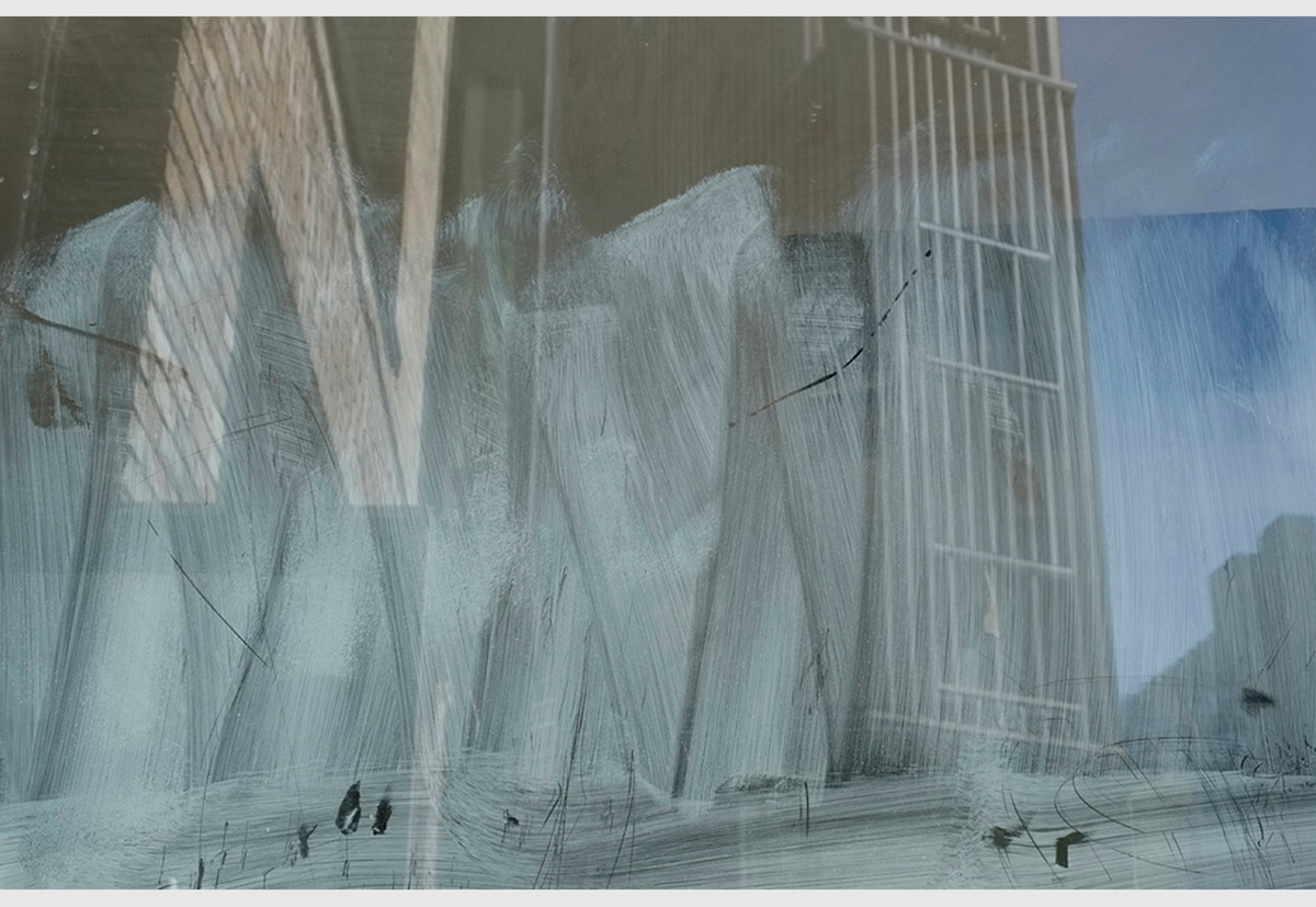 In its pristine condition, glass is capable of fracturing our perception into several layers: on one layer, we can see through its surface into interiors and, on the other, depending on the fall of light, we may see exterior scenes reflected, often side by side. Whitewash on the inside surface adds yet another layer by not only affecting the way the surroundings appear in the reflections but also by haphazardly concealing whatever lies behind the glass. Given that whitewash gets applied or splashed on by hand, a wide variety of patterns result. Moreover, the varying degrees of opacity allow for an occasional and intriguing glimpse beyond the glass surface.
